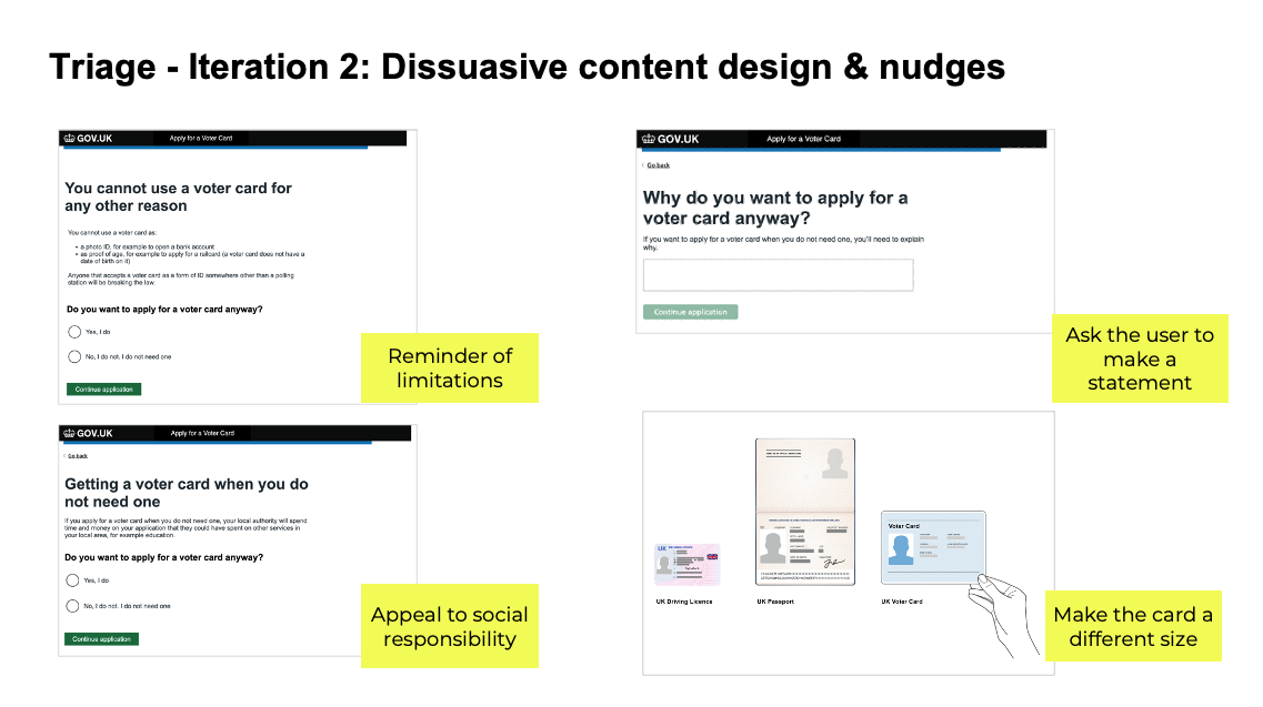 In early testing, many users who did not actually need a Voter Card (because they already had valid photo ID) said they would still apply, which would risk of overwhelming Electoral Registration Officers (EROs) with unnecessary applications.